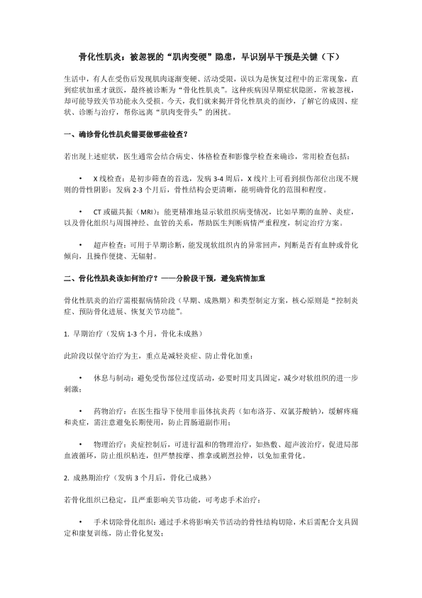 骨化性肌炎:被忽视的肌肉变硬隐患(下)