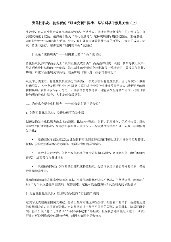 骨化性肌炎:被忽视的肌肉变硬隐患(上)