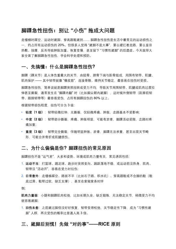脚踝急性扭伤:别让“小伤”拖成大问题