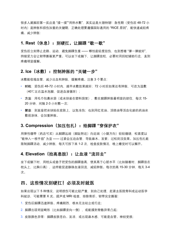 踝关节扭伤应急治疗全指南:从判断到处理的黄金法则