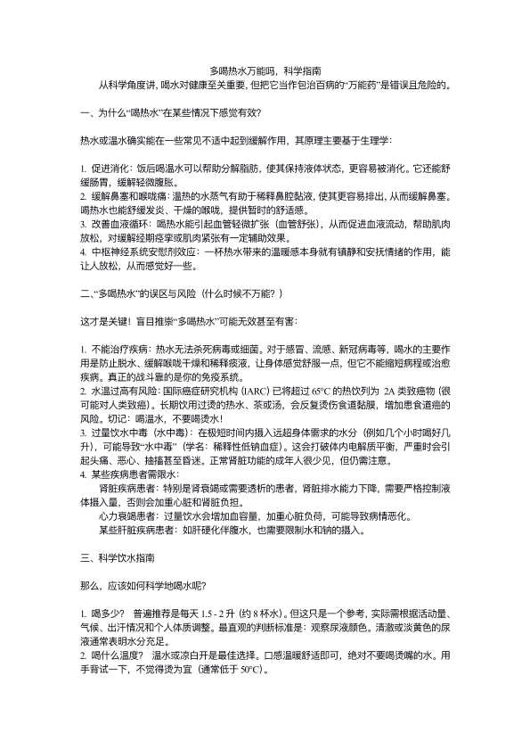 多喝热水万能吗?科学指南