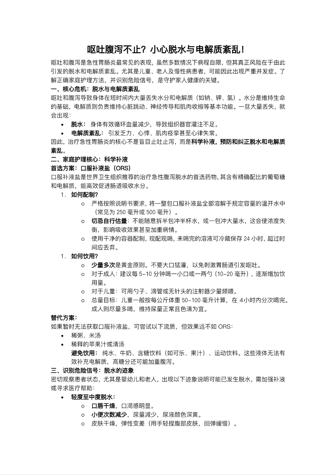 呕吐腹泻不⽌,⼩ ⼼ 脱 ⽔ 与 电 解 质 紊 乱 !