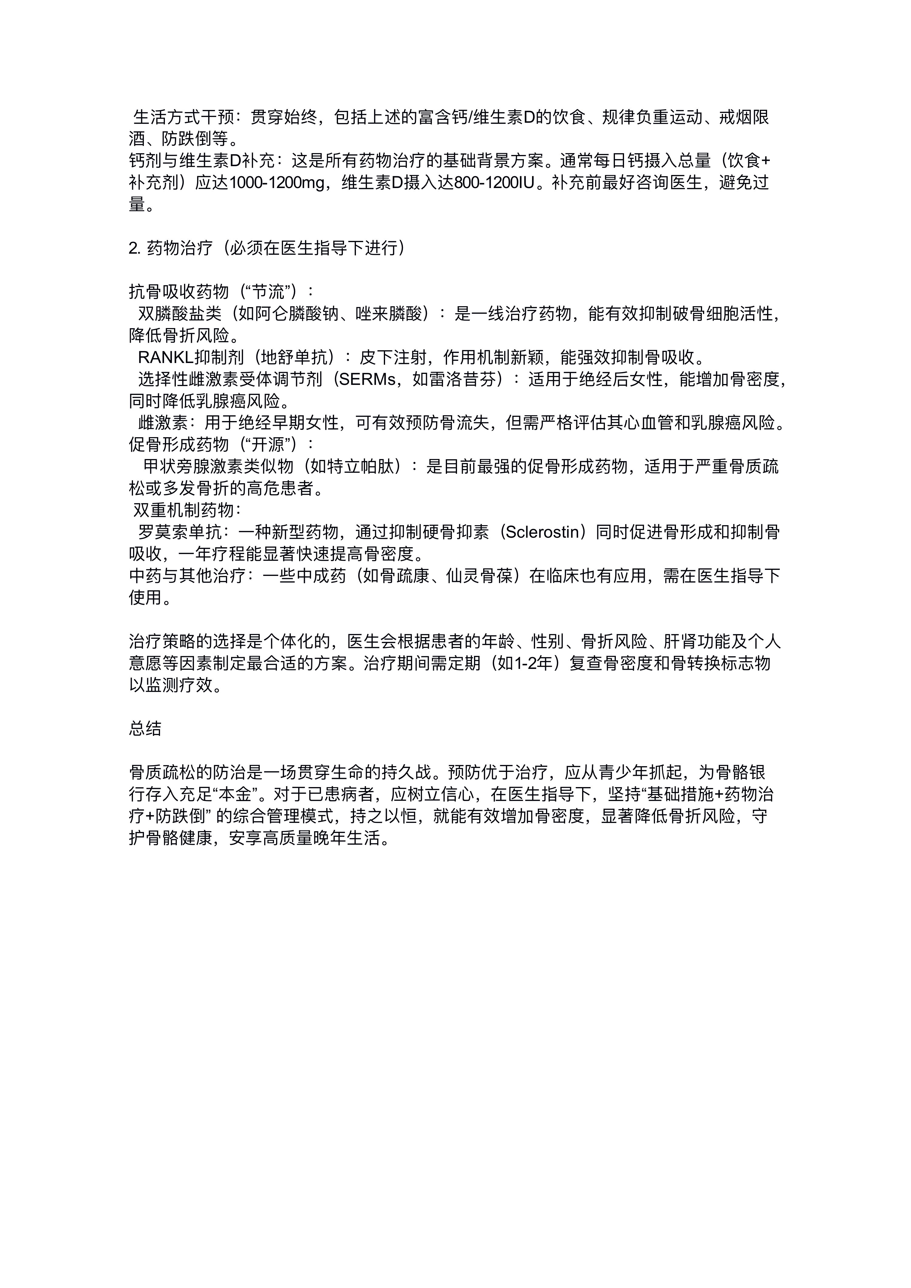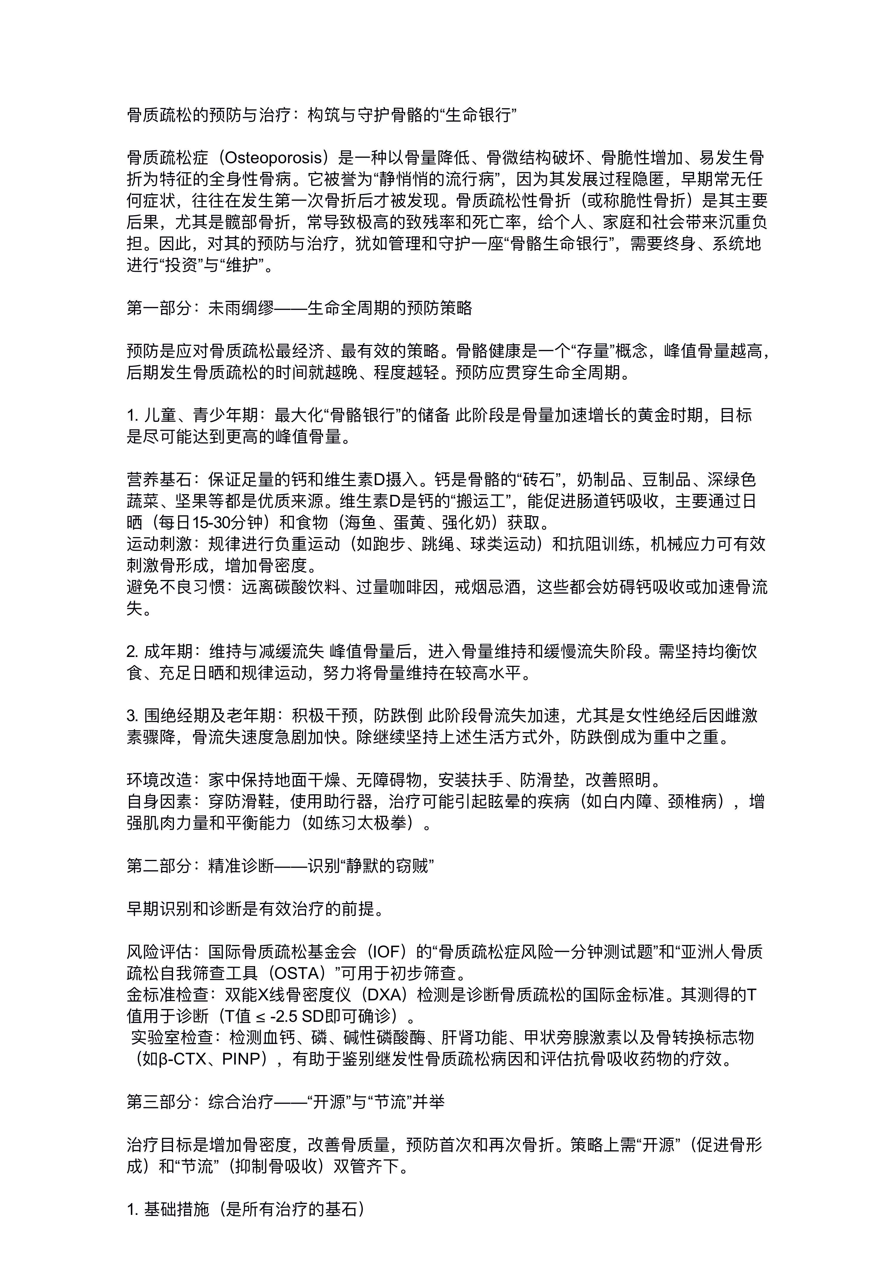 骨质疏松的治疗与防护