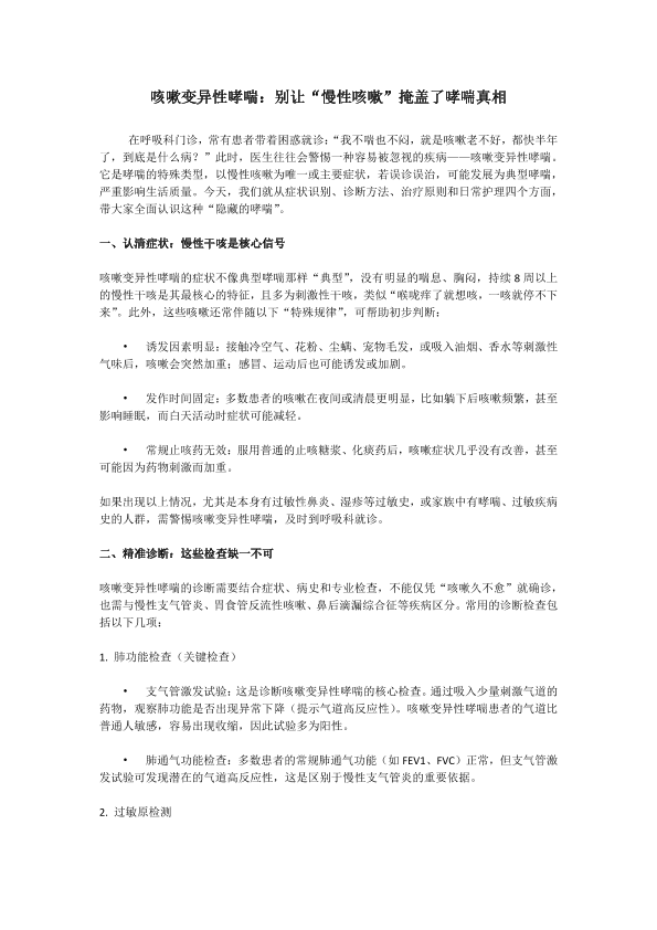 咳嗽变异性哮喘:别让“慢性咳嗽”掩盖了哮喘真相