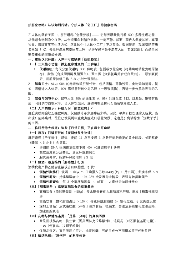 护肝全攻略:从认知到行动,守护人体「化工厂」的健康密码