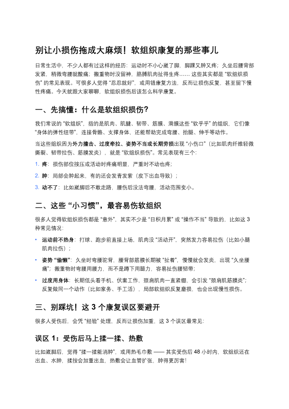 别让小损伤拖成大麻烦!软组织康复的那些事儿