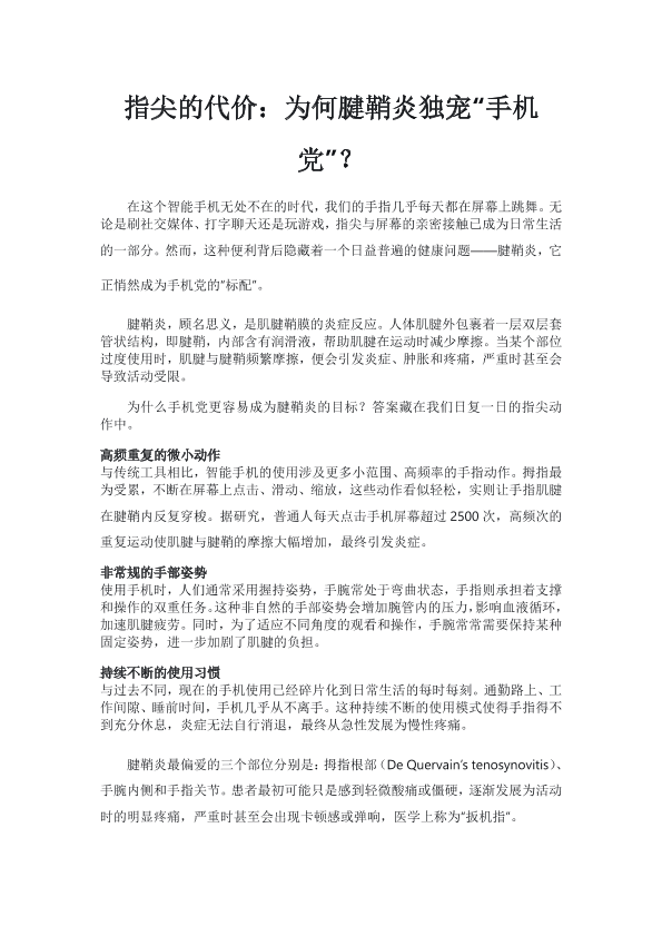 指尖的代价:为何腱鞘炎独宠“手机党”