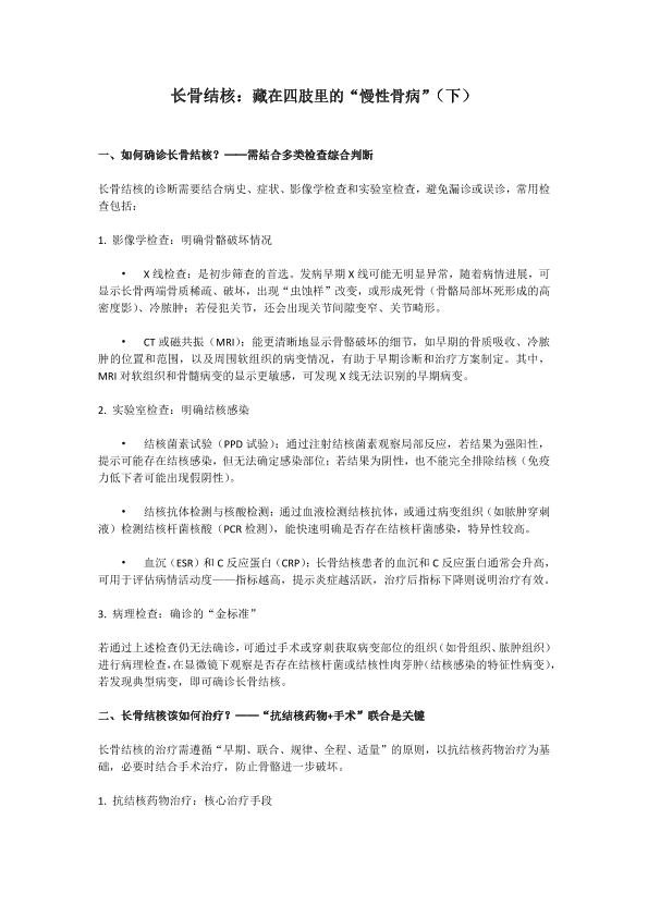 长骨结核:藏在四肢里的“慢性骨病”(下)