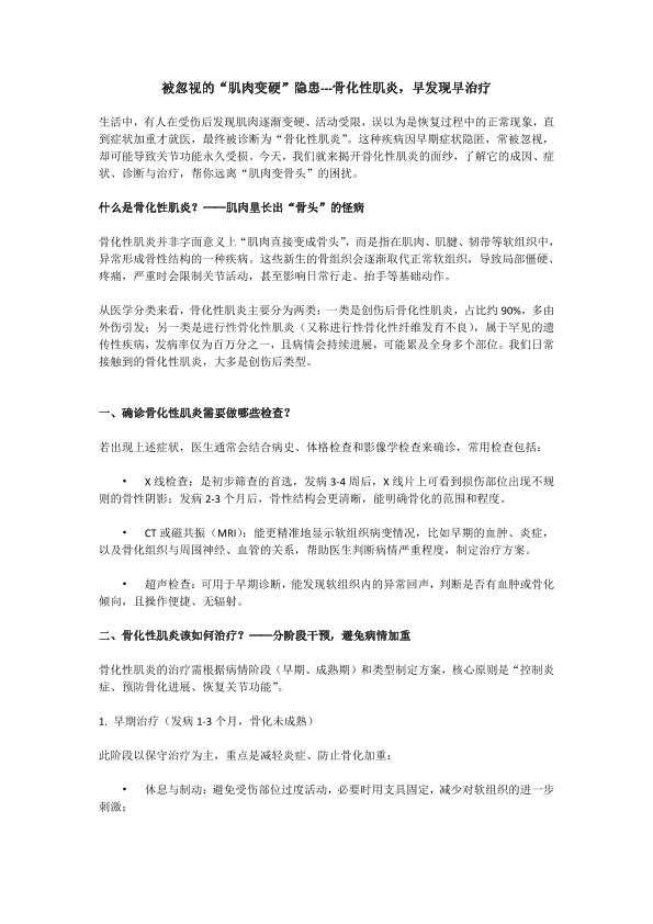 被忽视的“肌肉变硬”隐患‐‐‐骨化性肌炎