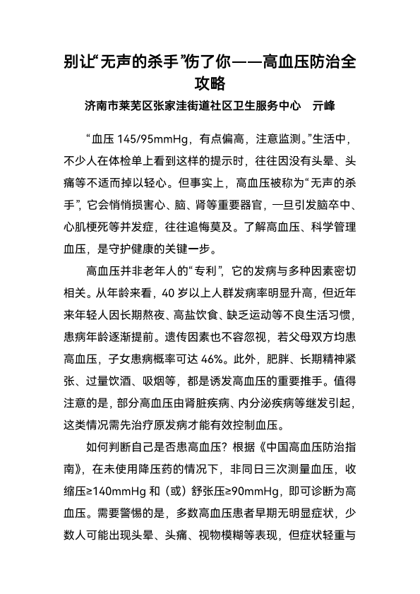 别让“无声的杀手”伤了你——高血压防治全攻略