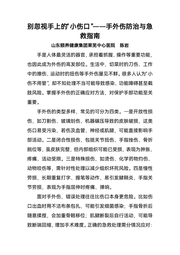 被忽视手上的“小伤口”——手外伤防治与急救指南