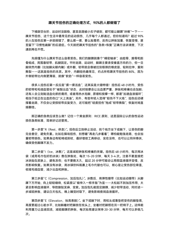 踝关节扭伤的正确处理方式,90%的人都做错了