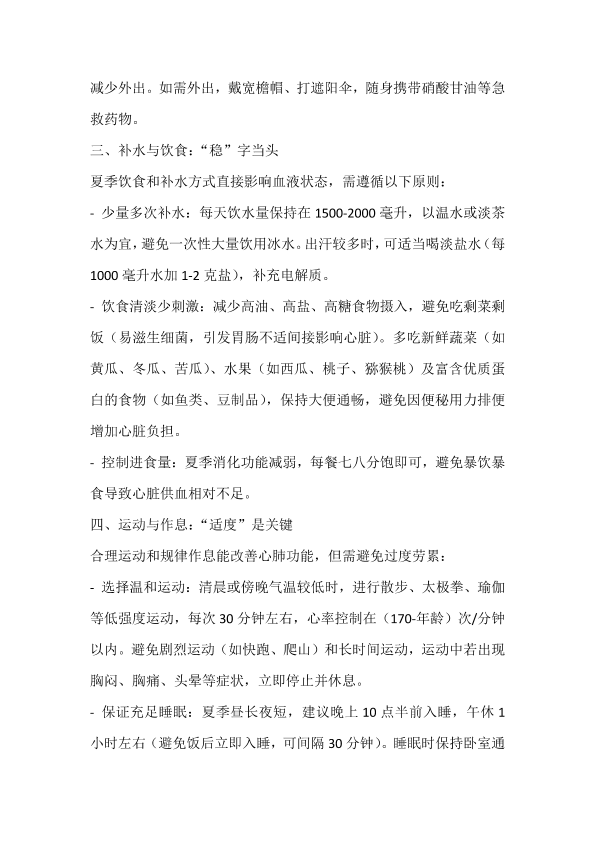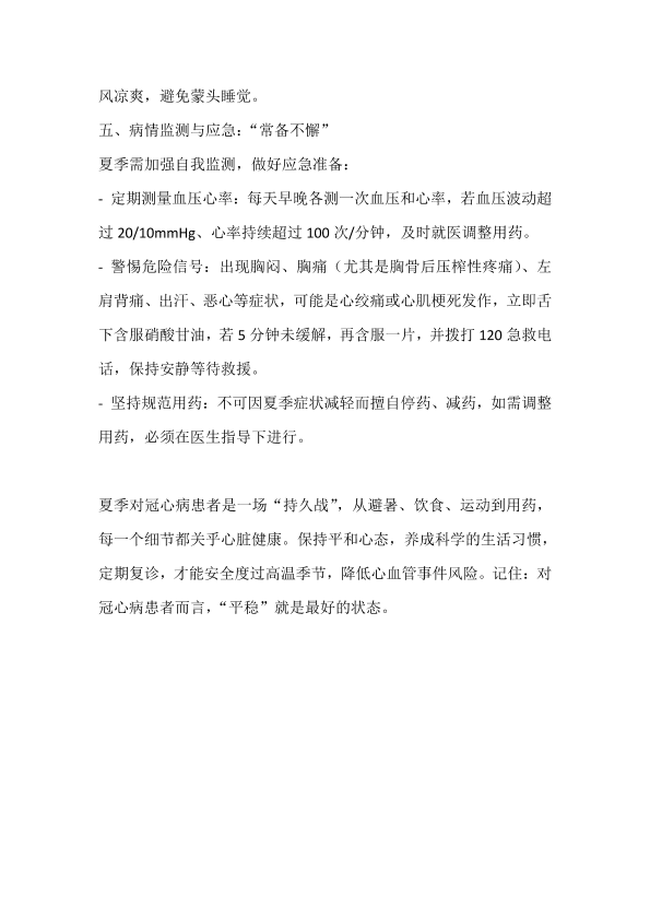冠心病患者夏季炎热注意事项