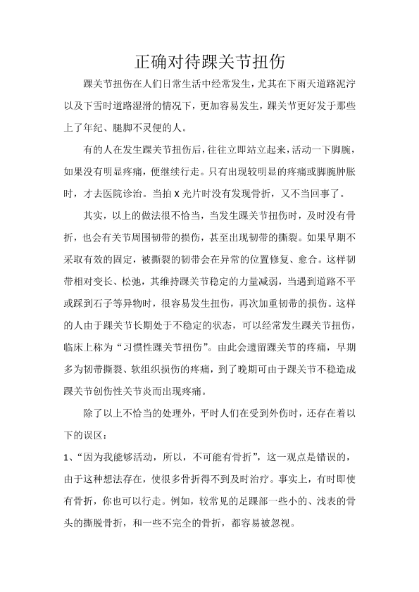 正确对待踝关节扭伤
