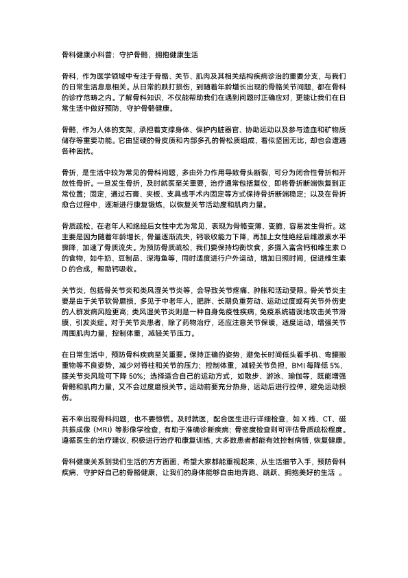 骨科健康小科普:守护骨骼,拥抱健康生活。