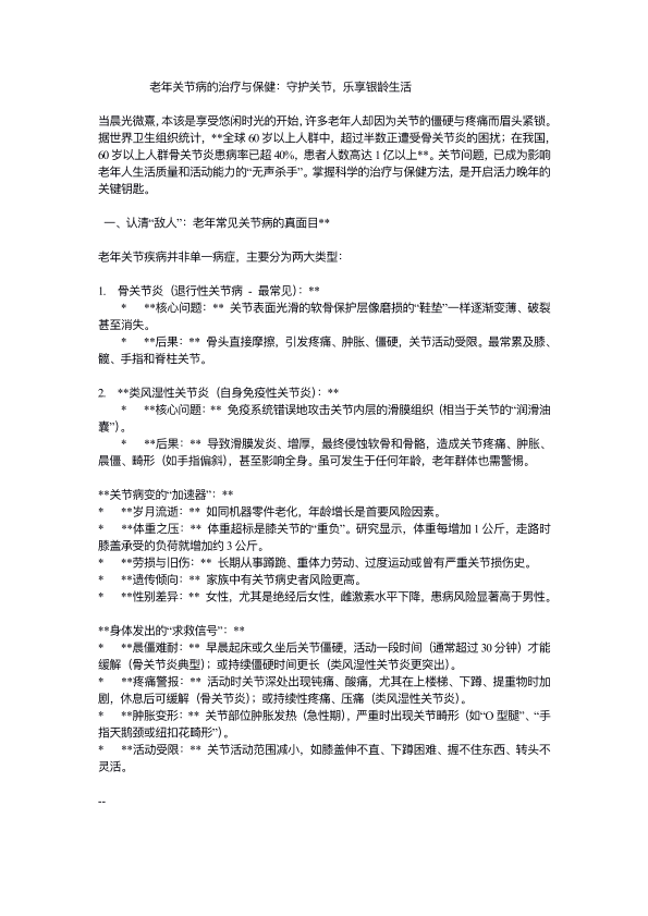 老年关节病的治疗与保健:守护关节,乐享银龄生活
