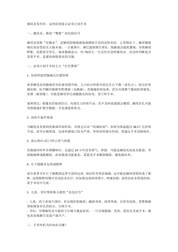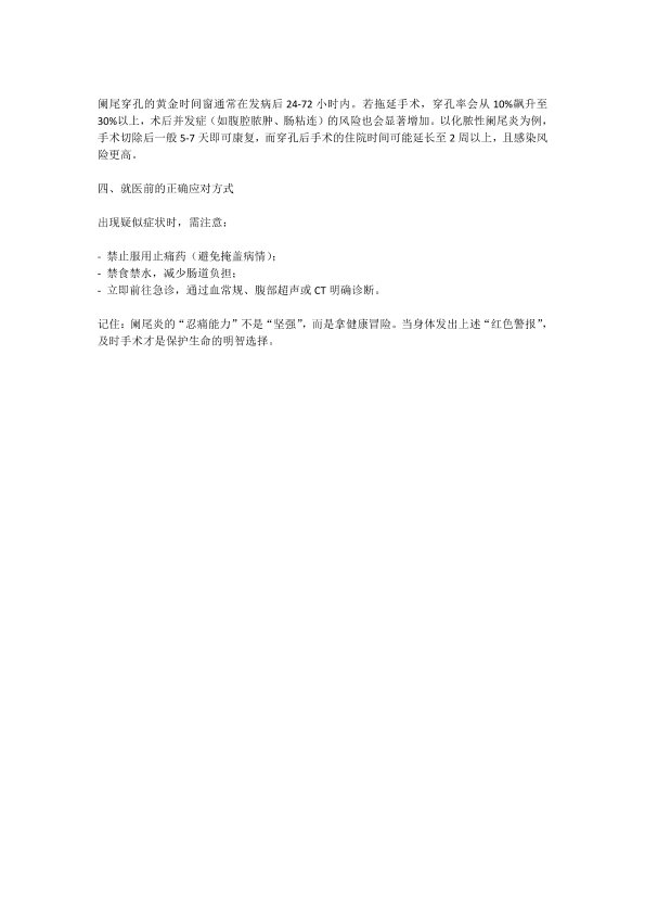 阑尾炎发作时,这些症状提示必须立刻手术