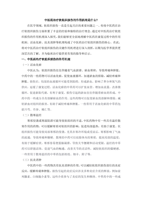 中医药治疗软组织损伤的作用机理是什么