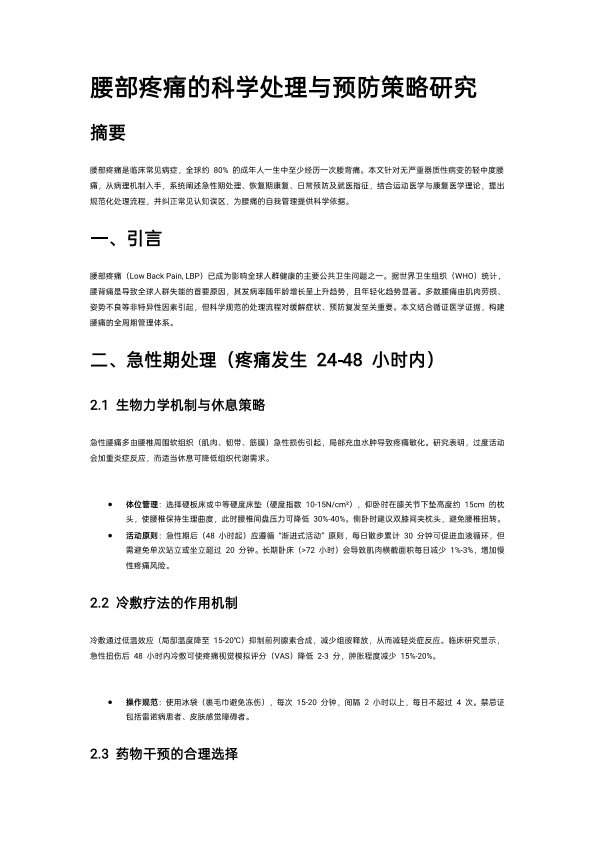 腰部疼痛的科学处理与预防策略研究