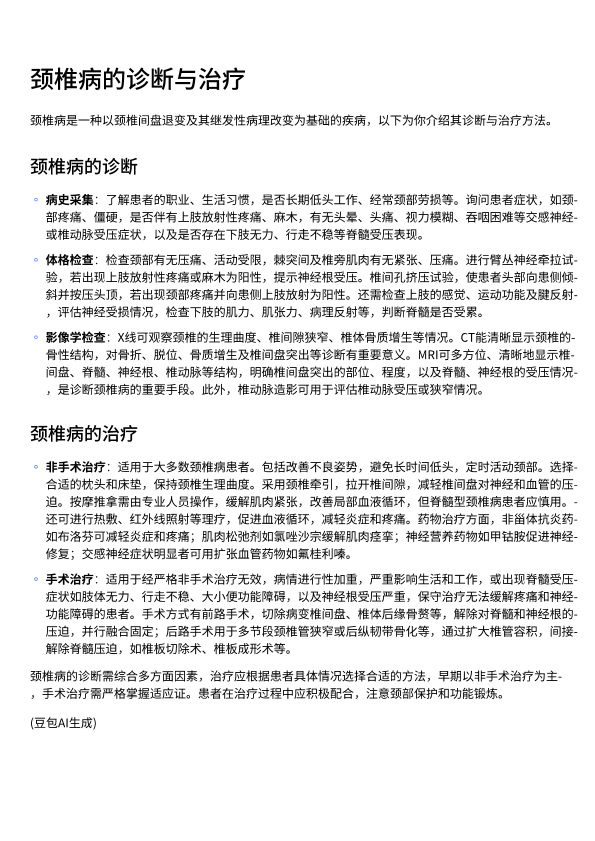 颈椎病的诊断与治疗