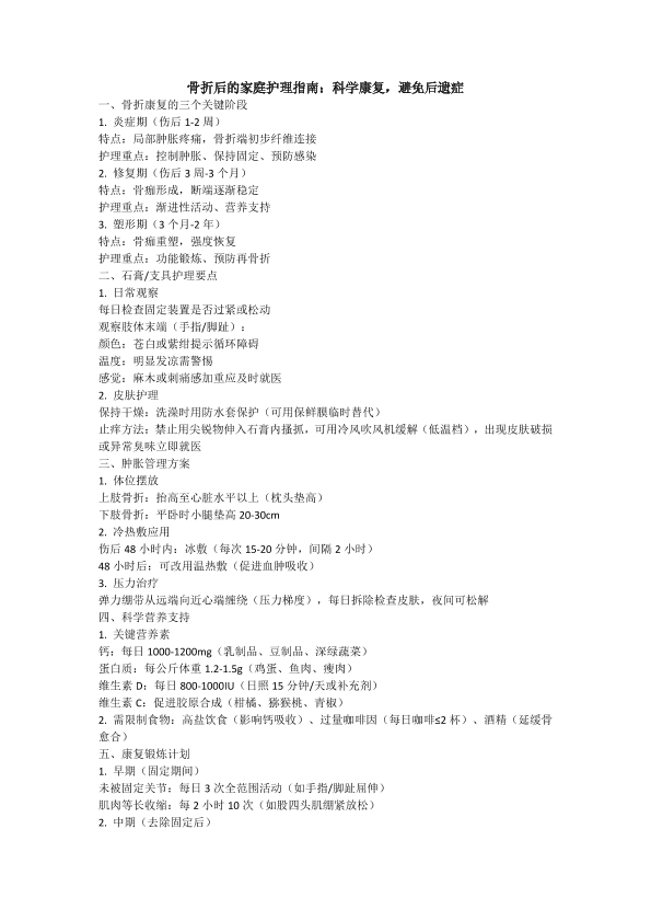 骨折后的家庭护理指南:科学康复,避免后遗症