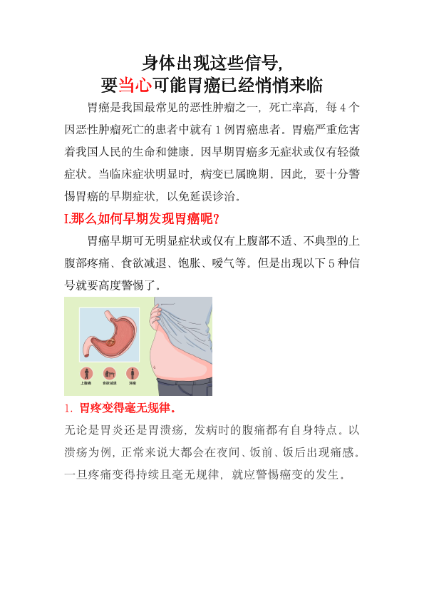身体出现这些信号,要当心可能胃癌已经悄悄来临