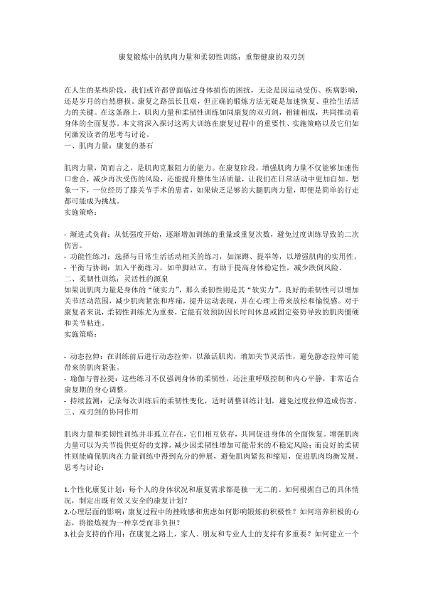 康复锻炼中的肌肉力量和柔韧性训练:重塑健康的双刃剑