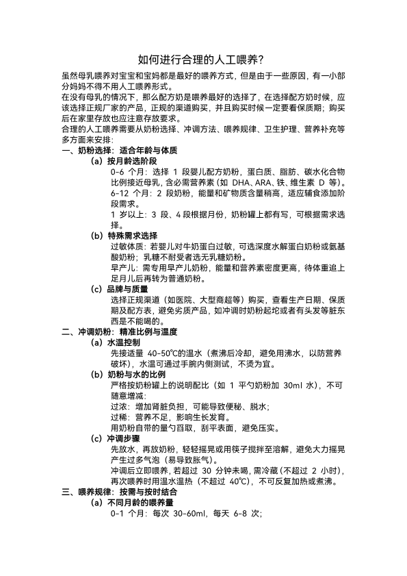 如何进行合理的人工喂养