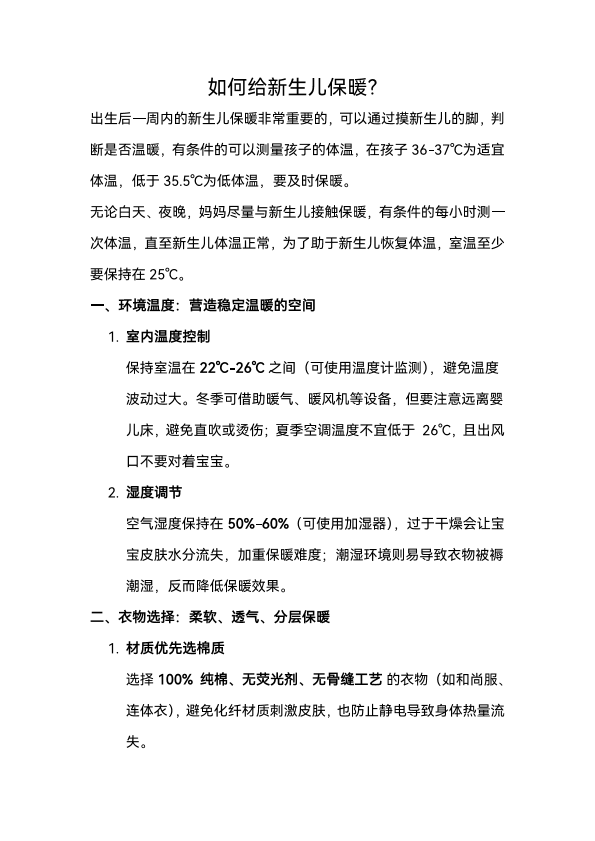 如何给新生儿保暖