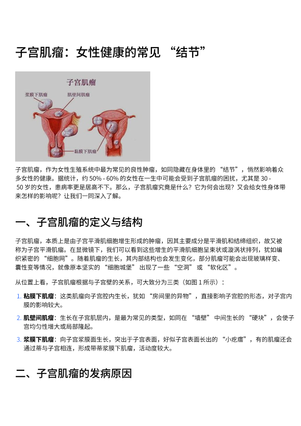子宫肌瘤:女性健康的常见‘结节’