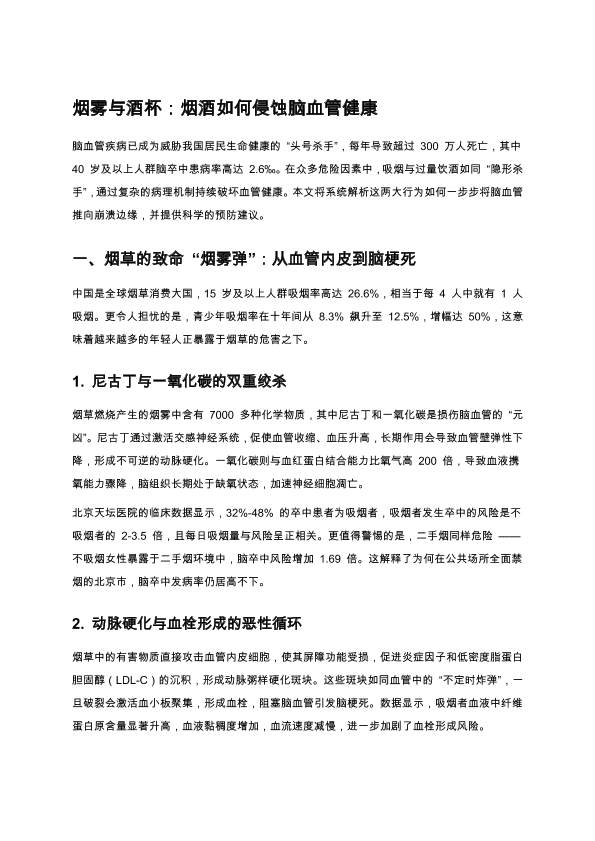 烟雾与酒杯:烟酒如何侵蚀脑血管健康