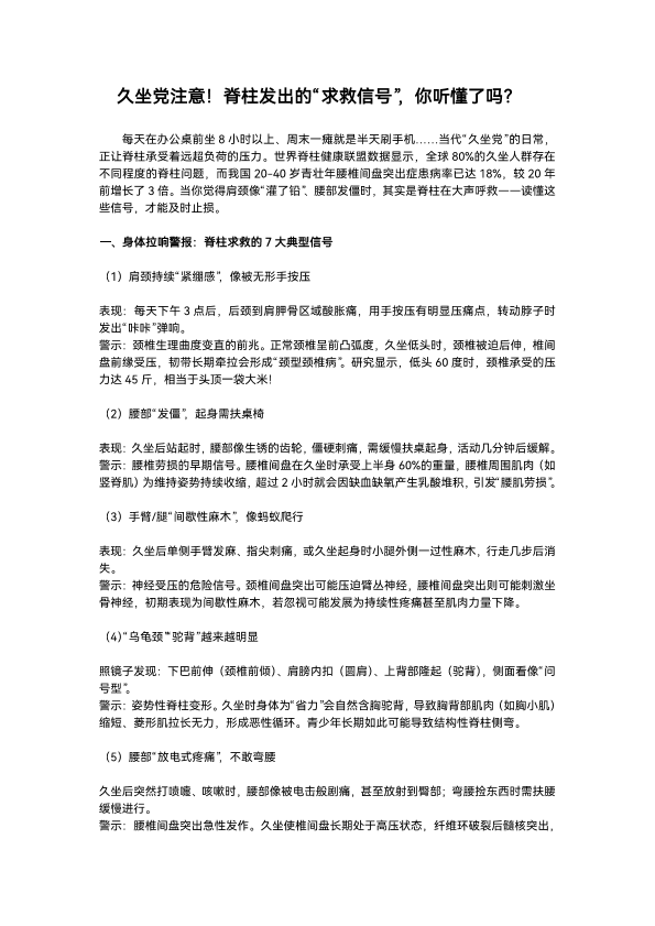 久坐党注意?脊柱发出的?求救信号??你听懂了吗?