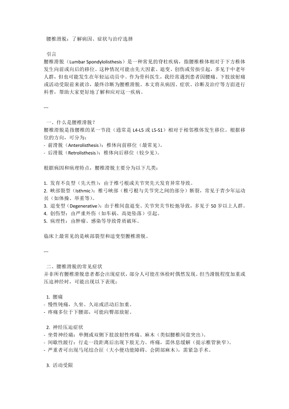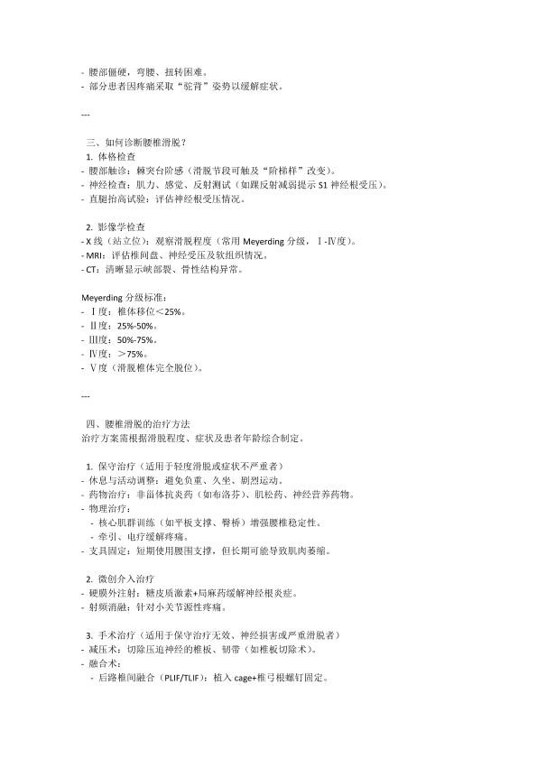 腰椎滑脱的病因症状与治疗选择