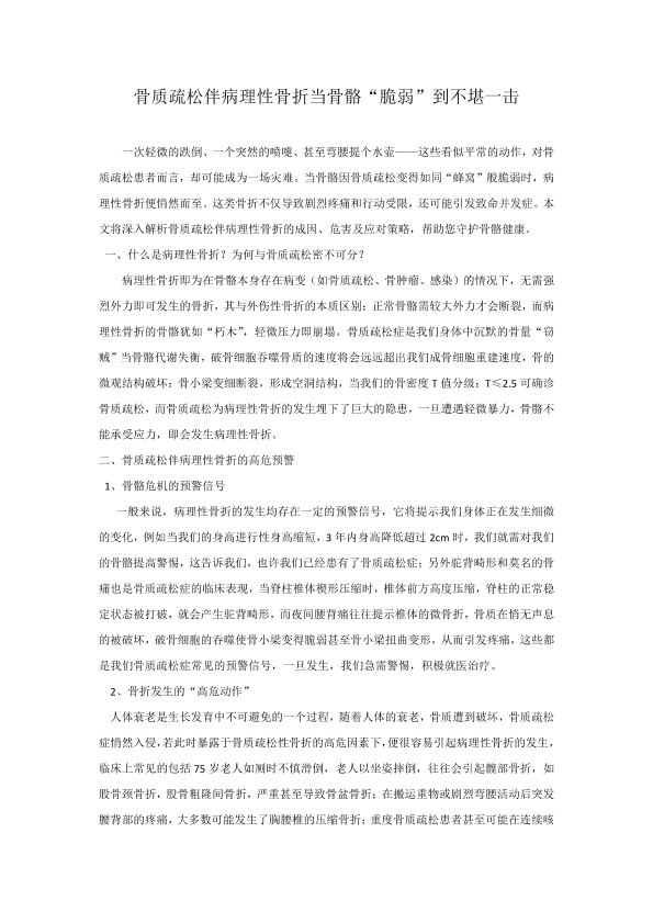骨质疏松伴病理性骨折--当骨骼“脆弱”到不堪一击