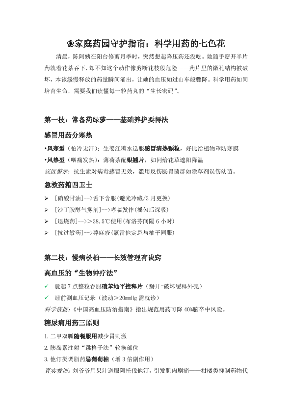 文字类作品科普文章《❀家庭药园守护指南:科学用药的七色花》 庞晓青