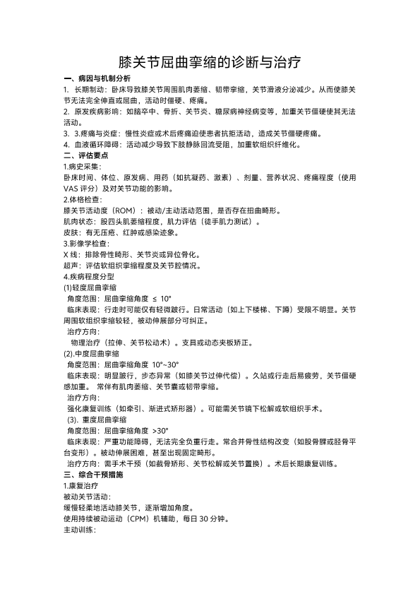 膝关节屈曲挛缩的诊断与治疗