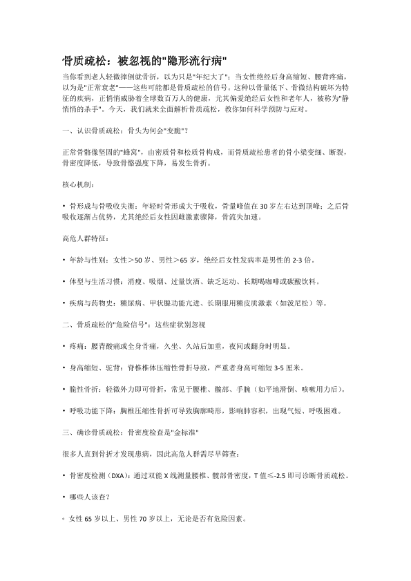 骨质疏松:被忽视的隐形流行病