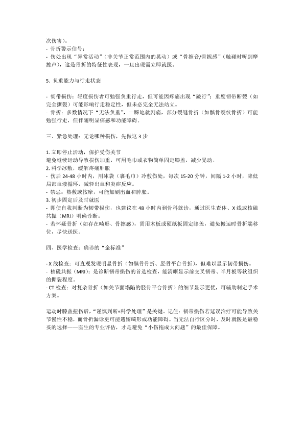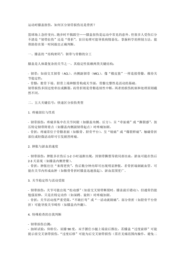 运动时膝盖扭伤,如何区分韧带损伤还是骨折?
