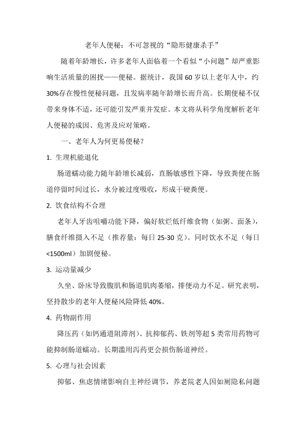 文字类作品+老年人便秘:不可忽视的"隐形健康杀手"+米世腾