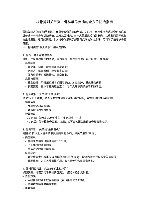 从骨折到关节炎:骨科常见疾病的全方位防治指南