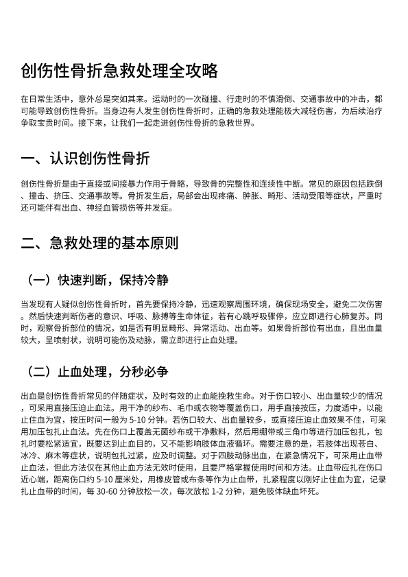 创伤性骨折急救处理全攻略