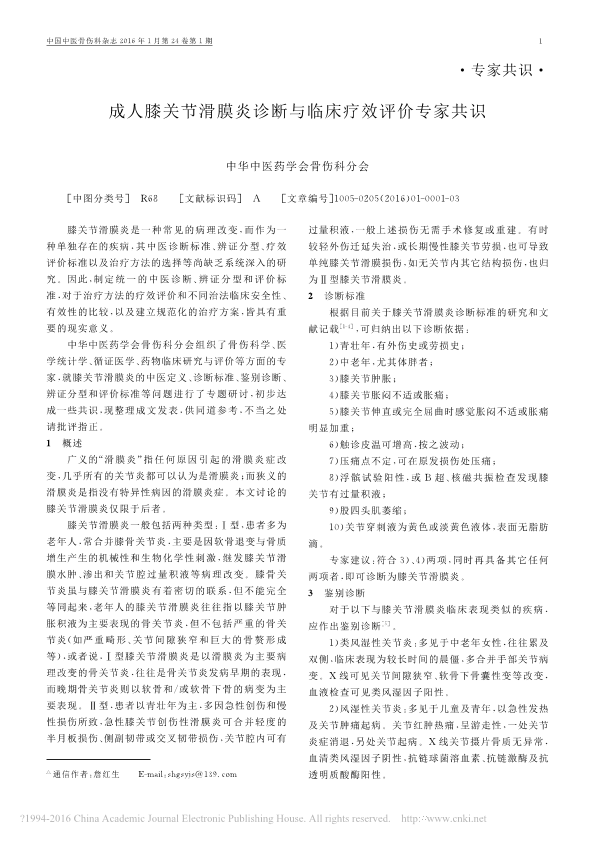 膝关节滑膜炎诊断治疗原则