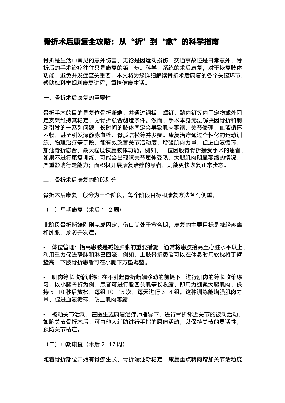 骨折术后康复全攻略:从“折”到“愈”的科学指南