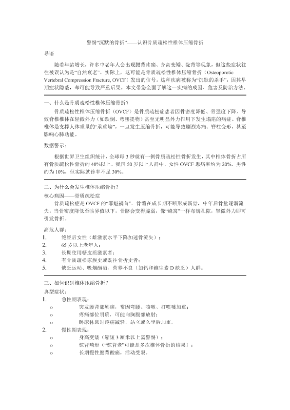警惕“沉默的骨折”——认识骨质疏松性椎体压缩骨折