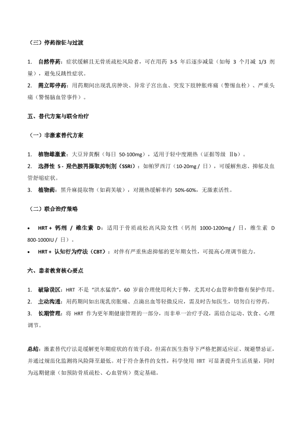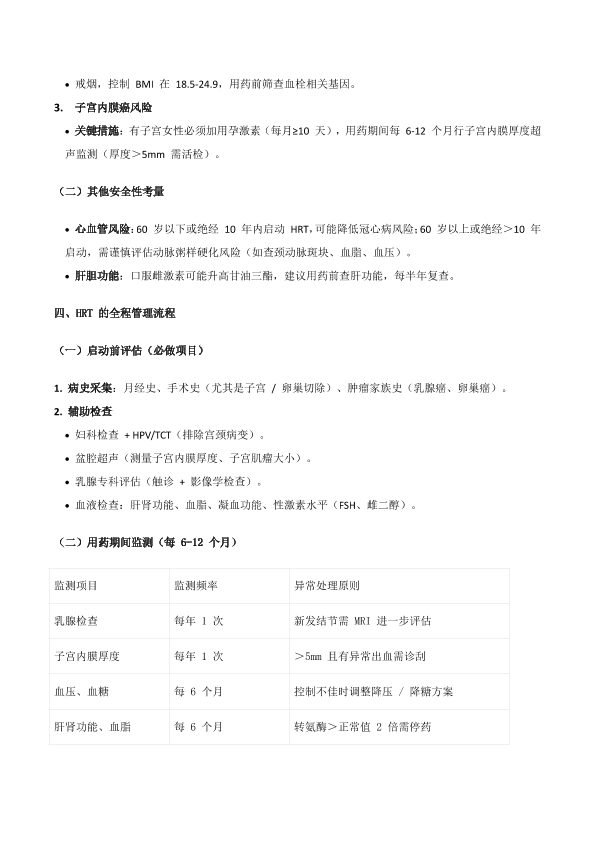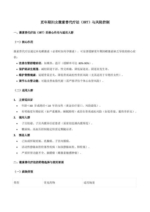 更年期妇女激素替代疗法(HRT)与风险控制