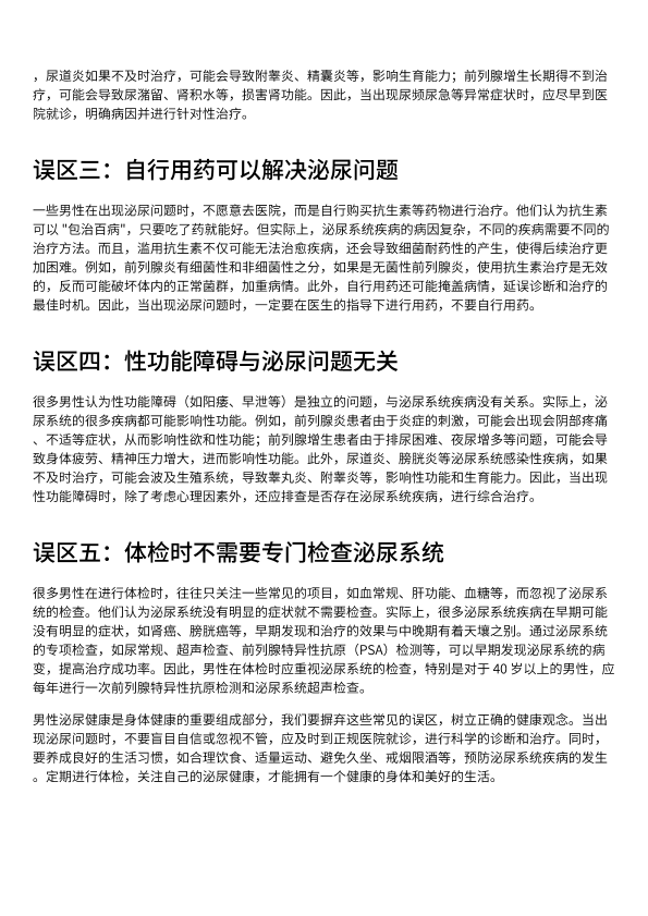 男性泌尿问题的五大误区