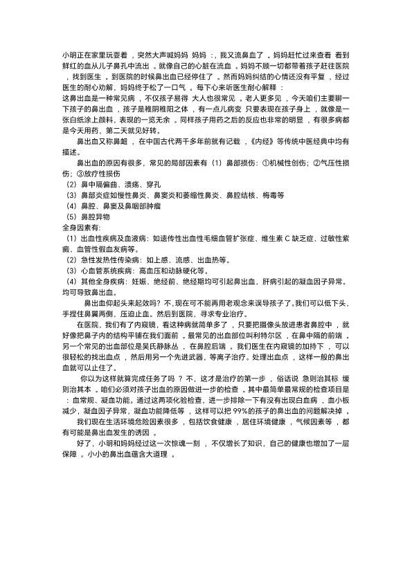 鼻出血的紧急处理