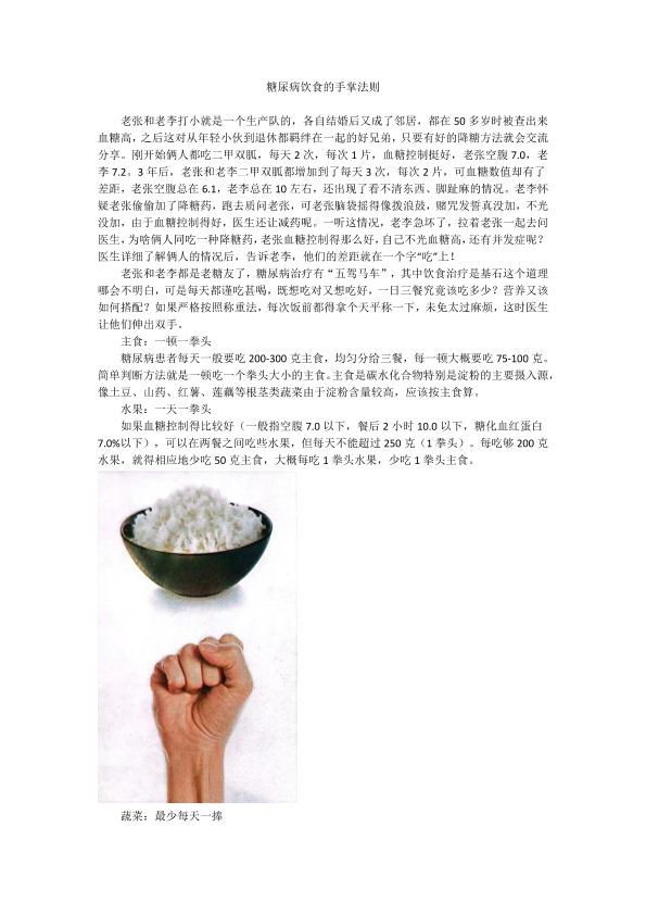 糖尿病饮食手掌法则