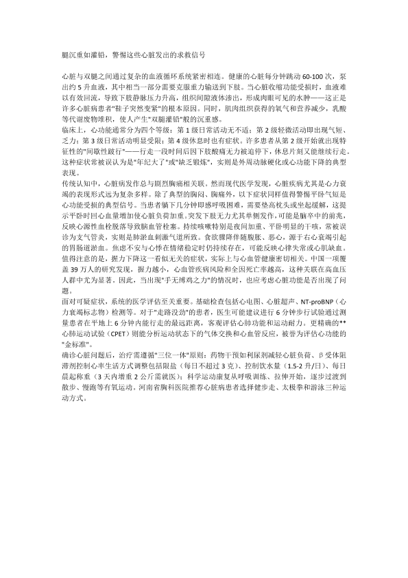 腿沉重如灌铅,警惕这些心脏发出的求救信号