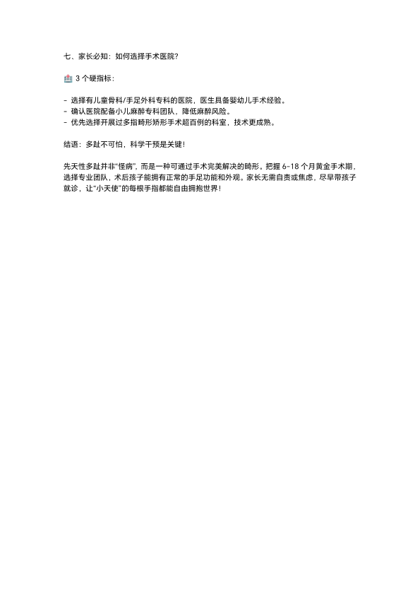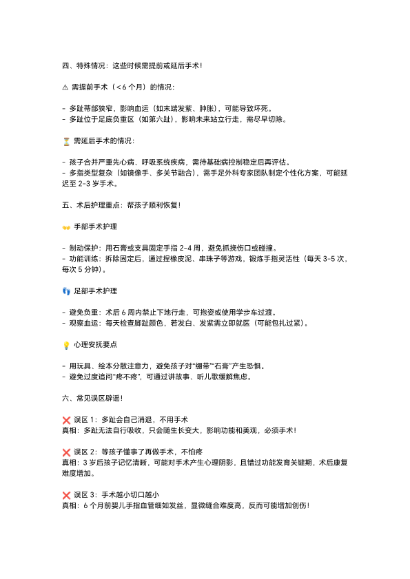 小儿先天性多趾手术时机全解析
